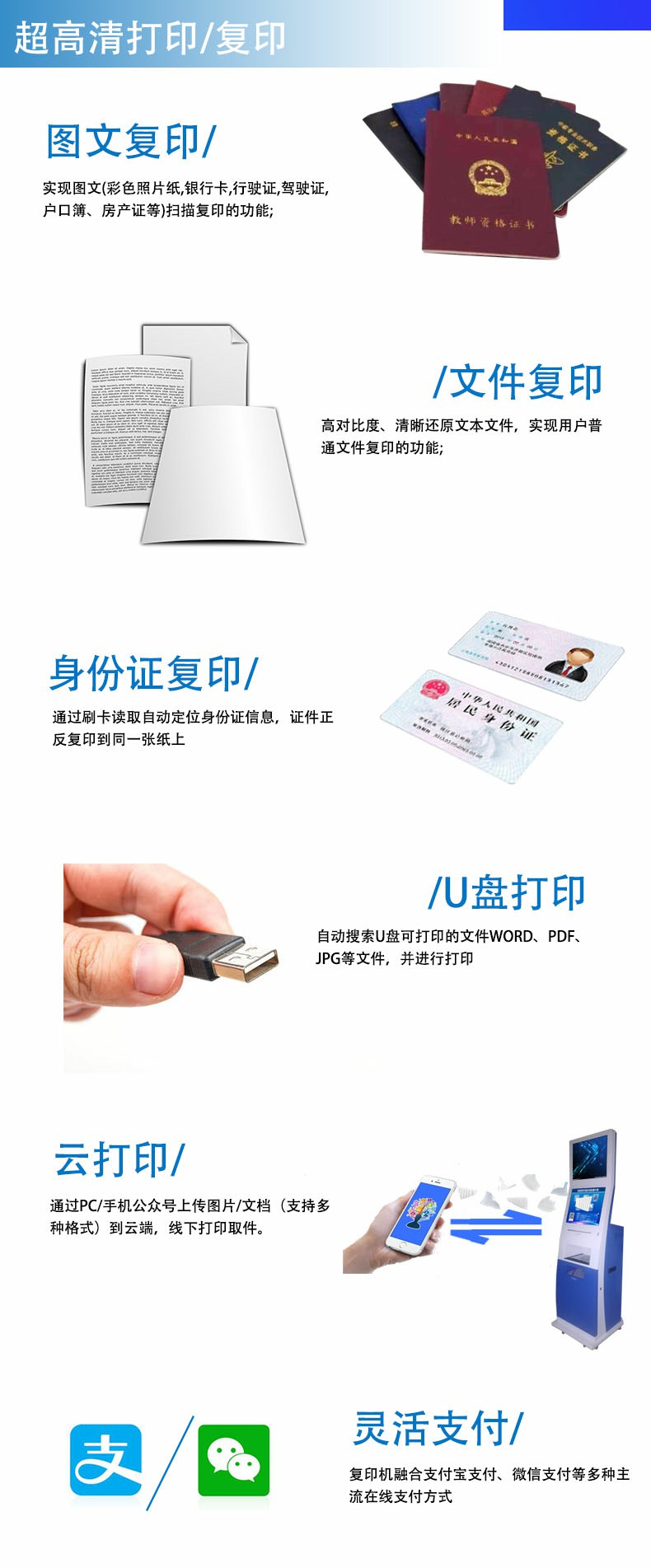 (圖文打印、文檔復印、身份證復印后,U盤打印確認后的支付頁面)