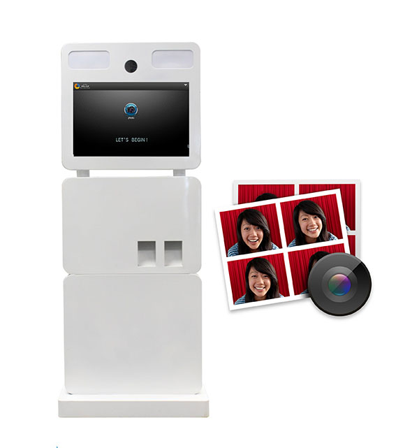 自助照相亭主體是一個機箱,上面是顯示屏,上面是照相機,連接至下方的觸控屏,既可以當顯示屏,又可以完成照相、修圖到打印的任何過程。