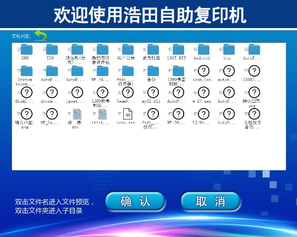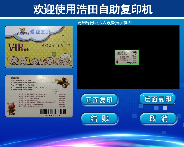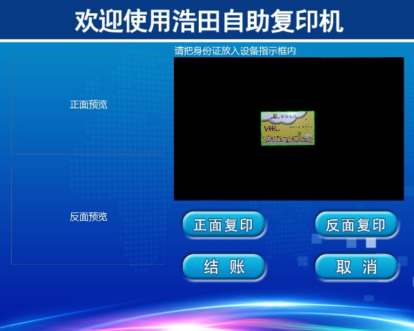 界面上有【身份證復(fù)印】【文件復(fù)印】【圖文復(fù)印】【U盤讀取】可選