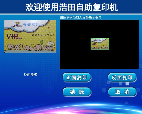 把身份證反面放入掃描框,點擊【反面復(fù)印】,左側(cè)顯示完成后可點擊【結(jié)賬】