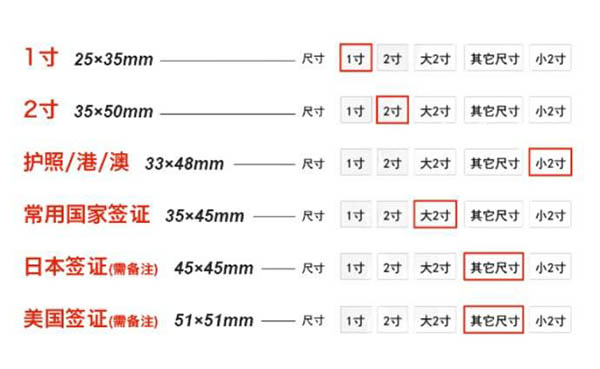 標(biāo)準(zhǔn)寸照(1寸照片大小:2.5cm*3.5cm;2寸照片大小:3.5cm * 5.3cm;小2寸照片大小:3.2cm *4.0cm;)