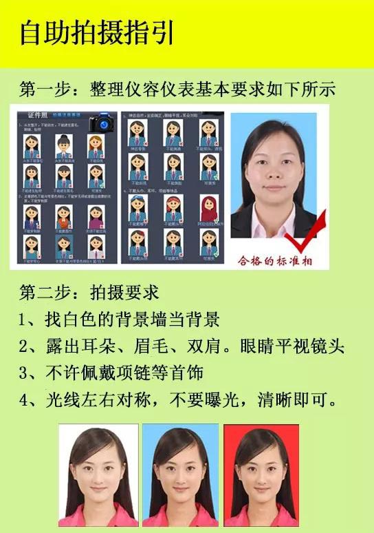 武漢自助證件拍攝要按照證件照的要求去拍,拍不好修的效果也不會太好,具體方法可以對照下圖操作。