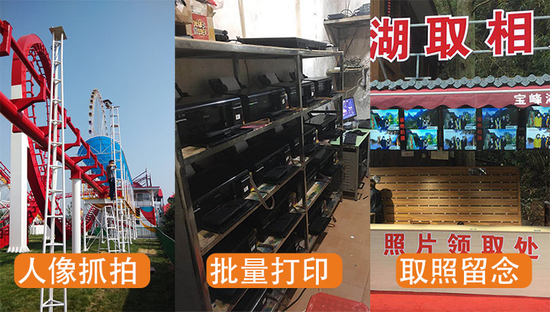 以過山車為例,景區在這一項目中安裝高速拍照打印系統,前端通過攝像頭抓拍畫面,后端服務器在接收照片以后即可現場打印,供游客挑選。