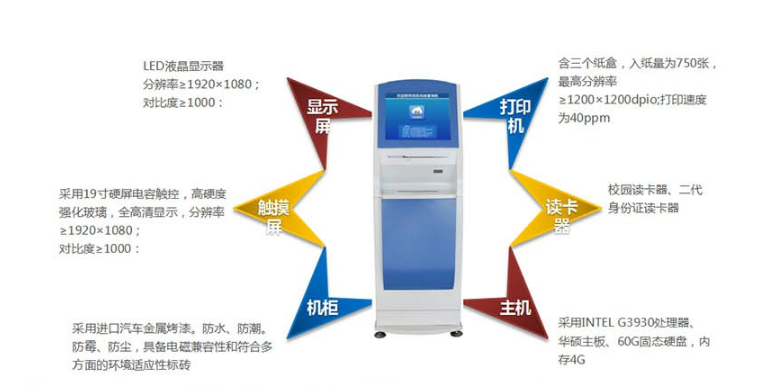 硬件部分包括智能化機柜、觸摸屏、電腦主機、投幣器、錢箱、打印機、支付組件、數(shù)據(jù)庫服務(wù)器,此外還可以選擇添加一卡通讀卡器、身份證讀卡器等設(shè)備。